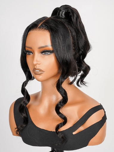 A ponytail hairstyle is one of the ideal hairstyles for a 360-lace front wig. The high ponytail with all the hair tied up looks neat and sophisticated. It is suitable for wearing during fitting day and the occasion where you need to show your confidence, such as a final presentation or a formal business conference. The high ponytail can effectively enhance your spirit and make the overall look refreshing and neat. If you want to add a sense of fashion and layering, you can leave twin side bangs like the model in the picture. This design makes you look more approachable and personable. If you prefer a retro style, pairing it with round earrings is a good choice.